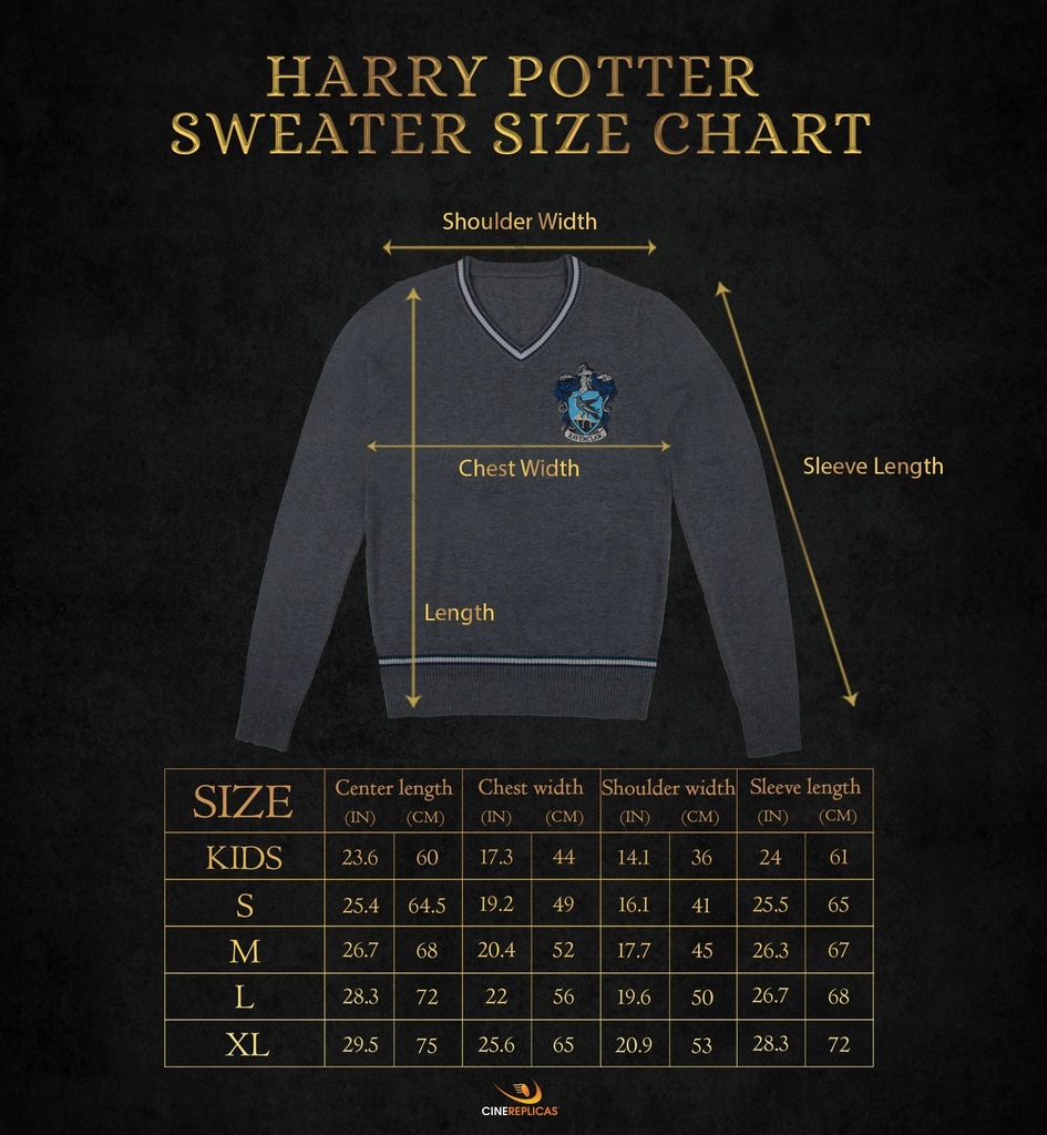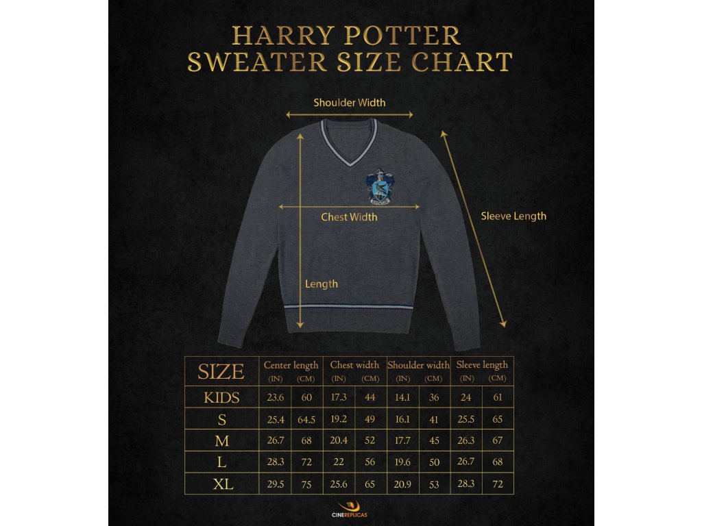 Havraspárský svetr, jaký jste viděli ve filmové sérii Harry Potter. Vyjádři hrdost na svou kolej s tímto svetrem do „V“ a jeho kvalitním vyšitým erbem Havraspáru. Vyrobený z měkké pleteniny, snadno ho sladíš s běžným oblečením nebo ho můžeš nosit jako součást plné havraspárské uniformy.