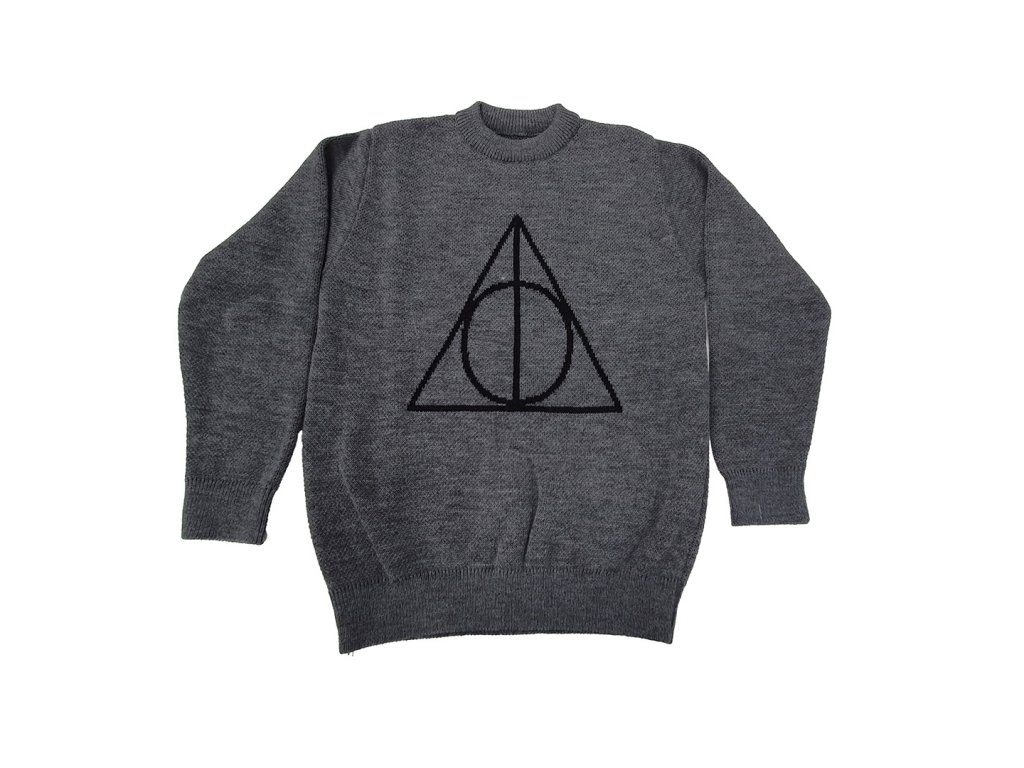 Tento elegantní šedý svetr s decentním symbolem Relikvií smrti je ideálním doplňkem pro každého fanouška Harryho Pottera, který má rád kouzla v nenápadném, ale stylovém provedení.