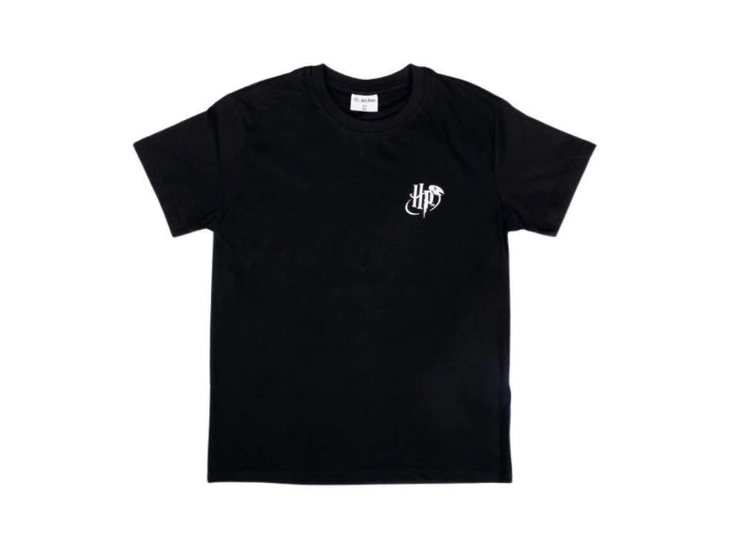 Dětské černé tričko s kulatým výstřihem a s motivem Siriuse Blacka na zádech.
