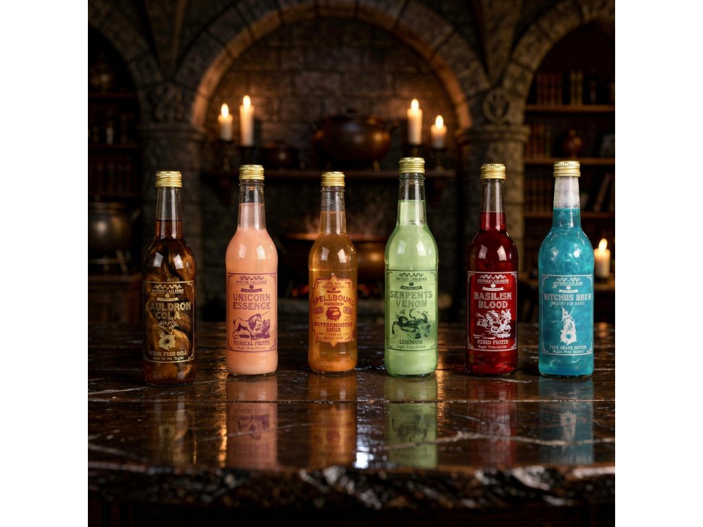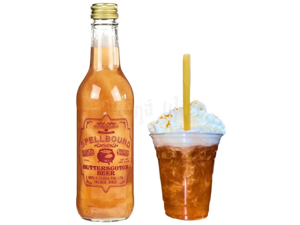 Vychutnejte si s přáteli skvělý a legendární Máslový ležák (Butterscotch Beer), ale pozor, nejde jen o obyčejné pití. Je to zážitek, který začne už ve chvíli, kdy lahví lehce pohneš. Na první pohled tě zaujme jeho kouzelný třpytivý efekt, který se ve světle krásně leskne a vytváří dojem opravdového lektvaru. Každý doušek pak potěší sladkou, jemně karamelovou chutí s nádechem vanilky, která připomíná legendární nápoj z kouzelnických hostinců.