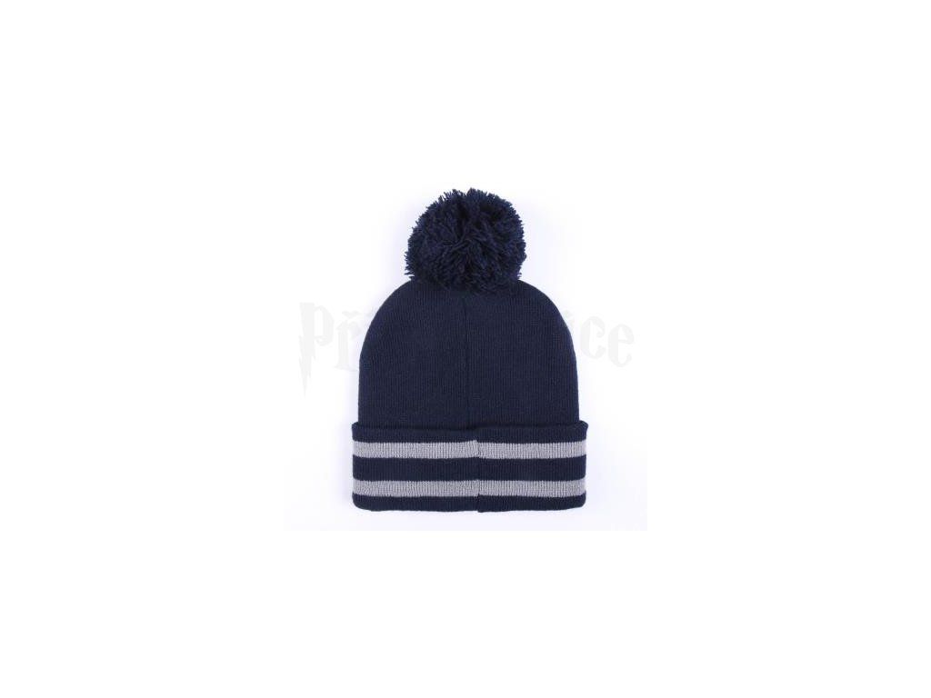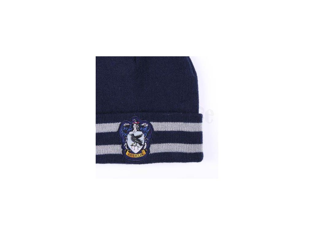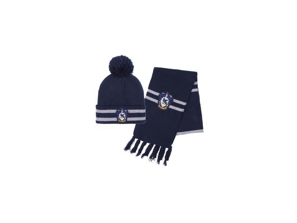 Sada zimní čepice a šály ve stylu havraspárské koleje s erbem a nápisem Ravenclaw.